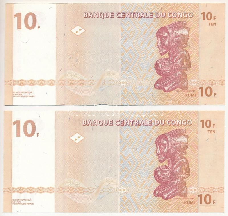 Congo 2007. 10 Francs (2x... https://www.darabanth.com/de/378-Fernauktion/378.0/Numismatik/Weltweit-Banknoten~2000012/Kongo-2007-10Fr-2x-sorszamkovetok-TI-I--Congo-2007-10-Francs-2x-sequential-serials-CUNC~II2214697
