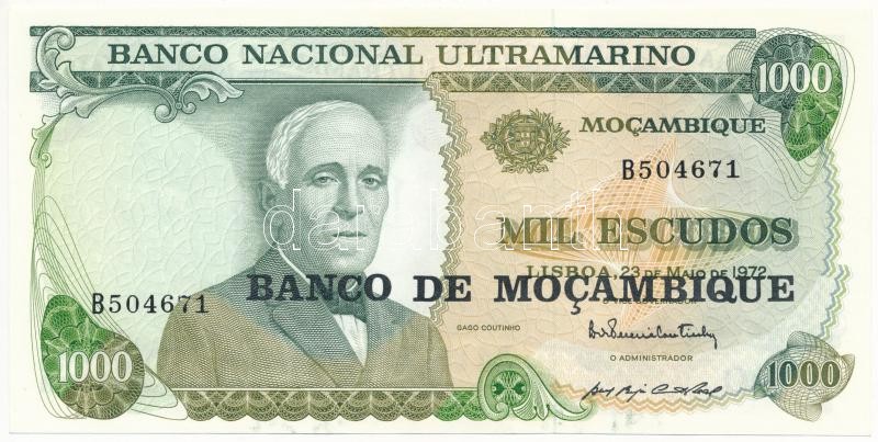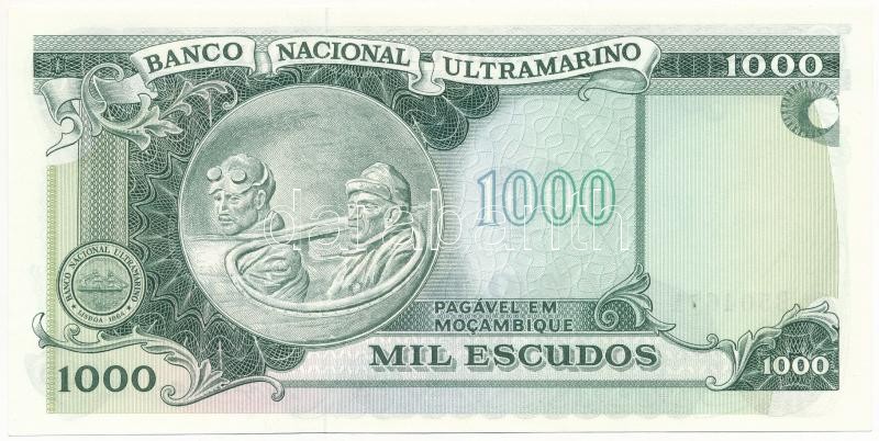 Mozambik 1972. 1000E fekete "BANCO DE MOCAMBIQUE" felülbélyegzéssel T:I