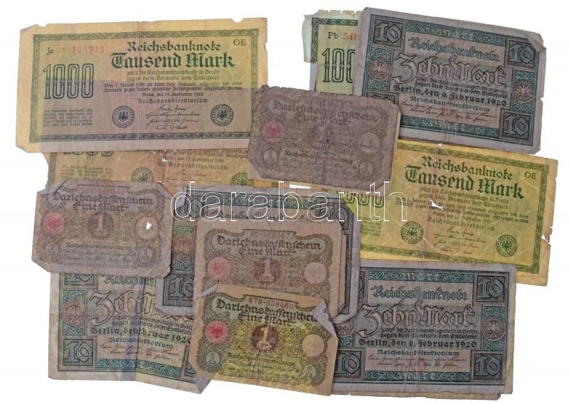 Beschreibung: Németország / Weimari Köztársaság 1920. 1M (7x) + 10M (8x) + 1922. 1000M (4x) T:III-IV