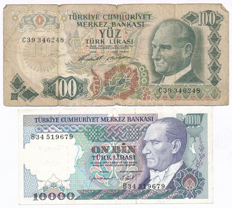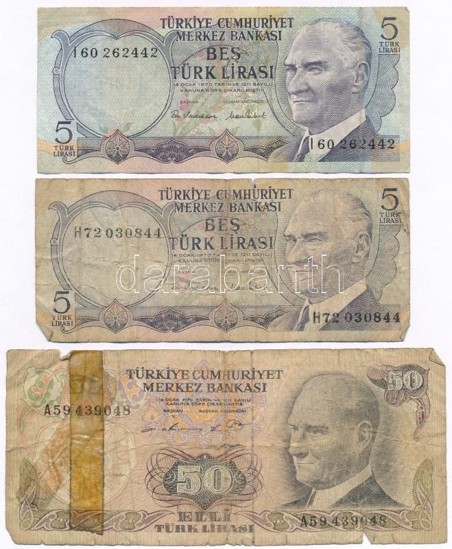 Turkey 197... https://www.darabanth.com/de/378-Fernauktion/378.0/Numismatik/Weltweit-Banknoten~2000012/Torokorszag-1970-5-db-5L-2x-50L-100L-10000L-TIII-IV-Turkey-1970-5-pieces-5-Lira-2x-50~II2134155