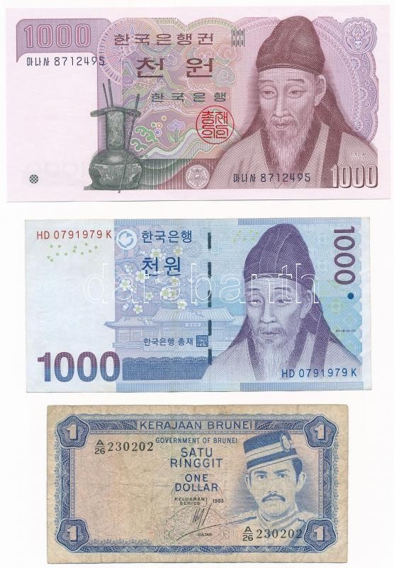 Mixed: South Korea 1983. 1000 Won + 2007. 1000 Won + Brunei 1983. 1 Ringgit C:UNC-F