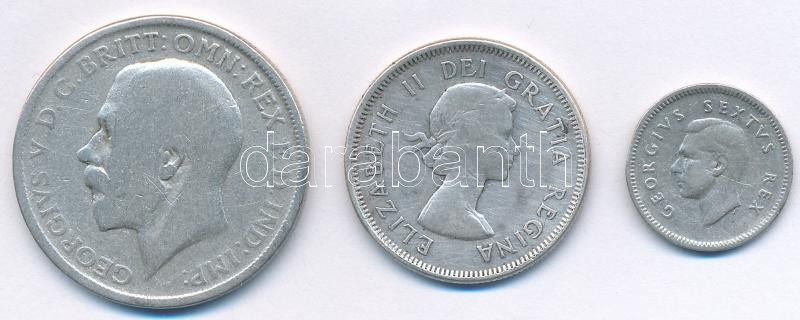 Nagy Britannia 1920. 1Fl Ag "V. György" + Kanada 1960. 25c Ag "II. Erzsébet" + Dél-Afrika 1949. 3p Ag "VI. György" T:2-,3 United Kingdom 1920. 1 Florin Ag "George V" + Canada 25 Cents Ag "Elizabeth II" + South Africa 1949. 3 Pence Ag "George VI" C:VF,F Krause KM#817a, KM#52, KM#35.1