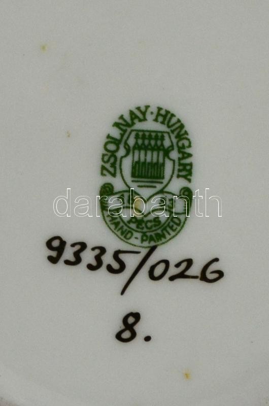 4 db Zsolnay tálka. Részben kézzel festett, jelzett, hibátlan. d: 9 cm https://www.darabanth.com/de/378-Fernauktion/378.0/Porzellan-Keramik-Glass/Porzellan~500005/4-db-Zsolnay-talka-Reszben-kezzel-festett-jelzett-hibatlan-d-9-cm~II2207370