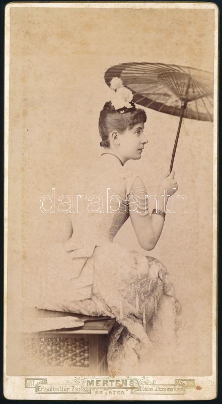 Lónyay Margit grófnő esernyővel, keményhátú fotó Mertens és Társa műte... https://www.darabanth.com/de/379-Fernauktion/379.0/Fotografie/Foto~500020/Lonyay-Margit-grofno-esernyovel-kemenyhatu-foto-Mertens-es-Tarsa-mutermebol-20-5C39711-~II2245503