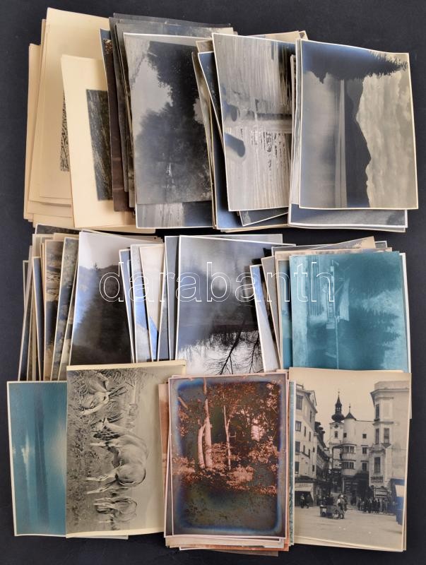 cca 1930 Vegyes városképek, tájképek, hegyek, havas erdő, rétek, stb., kb. 141 db, főként 17,5×12,5 cm