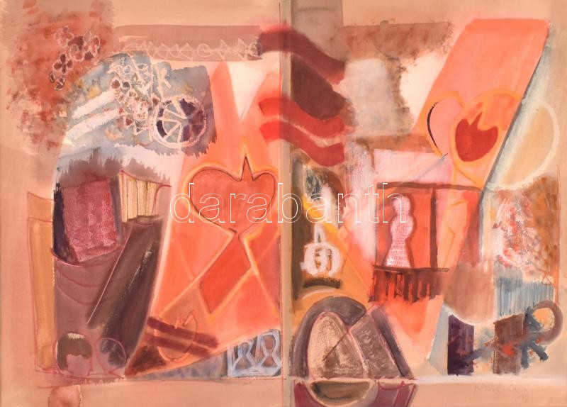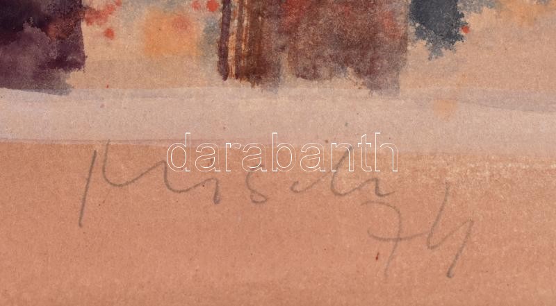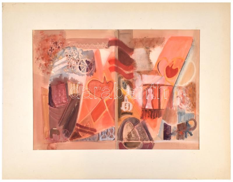 Beschreibung: Misch Ádám (1935-1995): Ünnep. Akvarell, papír, jelzett (Misch 74) és a paszpartu hátoldalán, 66×47 cm