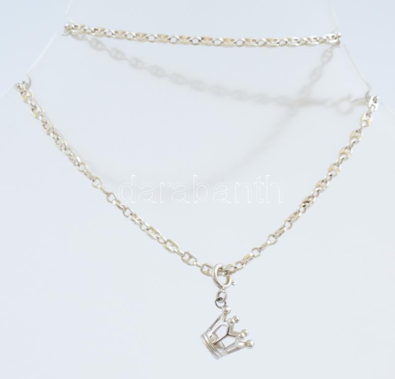 Ezüst(Ag) ovális szemű pálcikás nyaklánc, korona függővel, jelzett, h:... https://www.darabanth.com/de/379-Fernauktion/379.0/Juwelen/Juwelen~500033/EzustAg-ovalis-szemu-palcikas-nyaklanc-korona-fuggovel-jelzett-h-45-cm-2C3971-2-cm-net~II2205971