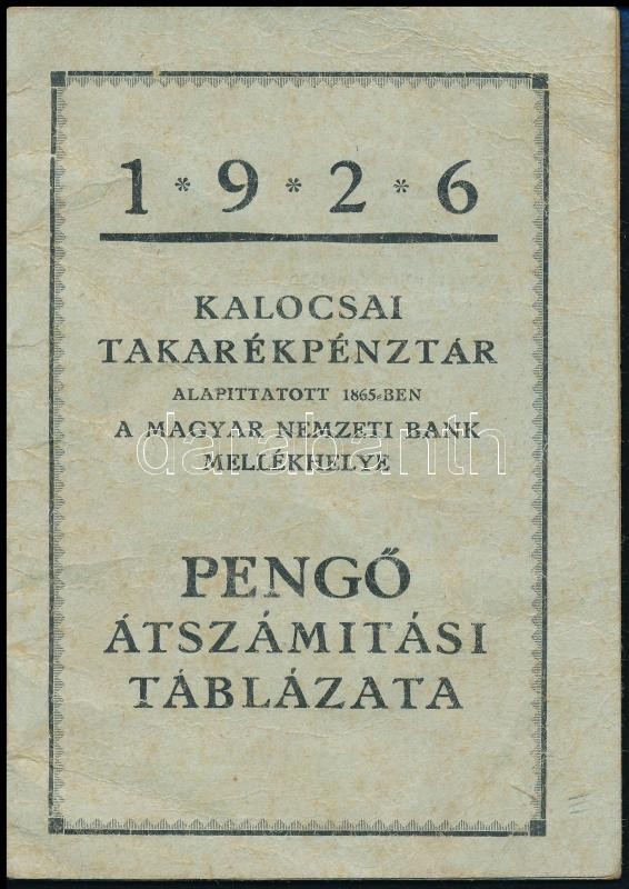1926 Kalocsai Takarékpénztár pengőátszámítási táblázat https://www.darabanth.com/de/379-Fernauktion/379.0/Kunst-Dokumente-andere-Sammelgebiete/Drucksachen~500030/1926-Kalocsai-Takarekpenztar-pengoatszamitasi-tablazat~II2242009