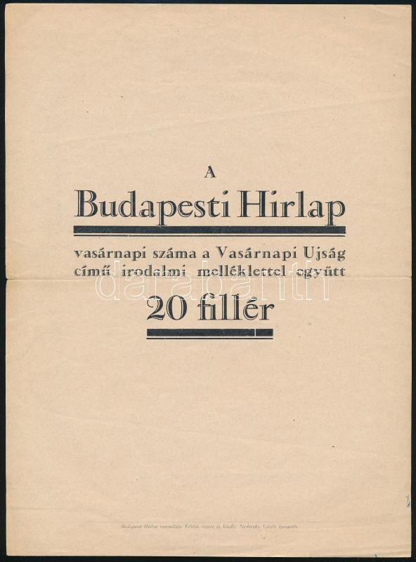 Beschreibung: cca 1925 "Szép vagy, gyönyörű vagy, Magyarország" dalszövege, Budapesti Hírlap Vasárnapi Újság melléklete, hajtott