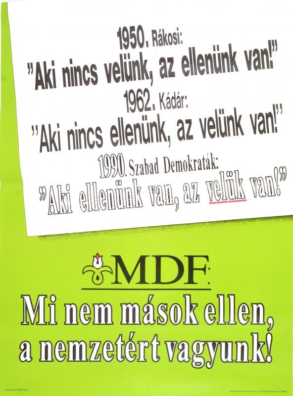 MDF: Mi nem mások ellen, a nemzetért vagyunk! - választási plakát, haj... https://www.darabanth.com/de/379-Fernauktion/379.0/Kunst-Dokumente-andere-Sammelgebiete/Plakat~500031/MDF-Mi-nem-masok-ellen-a-nemzetert-vagyunk-valasztasi-plakat-hajtasnyommal-felcsavarva-~II2170822