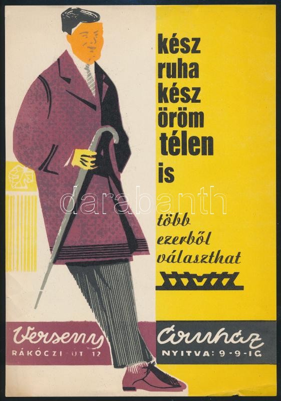 cca 1960 Kész ruha, kész öröm télen is - Verseny Áruház, villamosplaká... https://www.darabanth.com/de/379-Fernauktion/379.0/Kunst-Dokumente-andere-Sammelgebiete/Plakat~500031/cca-1960-Kesz-ruha-kesz-orom-telen-is-Verseny-Aruhaz-villamosplakat-kis-gyurodessel-~II2242881