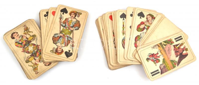 Beschreibung: cca 1910 Piatnik tarokk kártyapaklik, 2 pakli, 42+42 laposak, kék és piros hátlapokkal, de kártyabélyeg nélkül, 12x8 cm