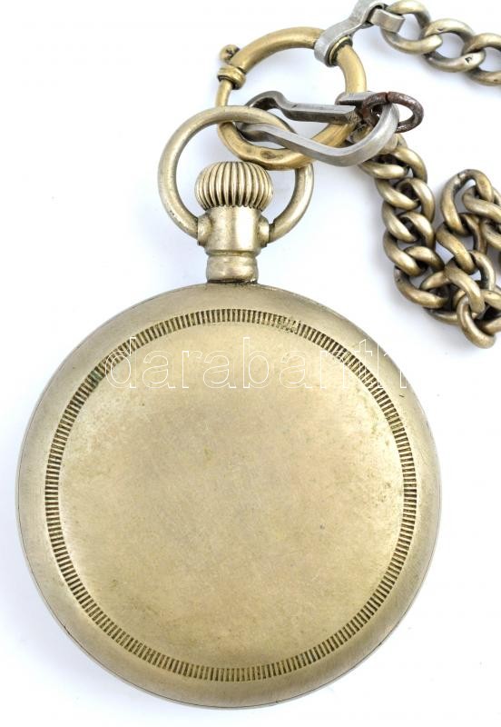 Beschreibung: Chronometre zsebóra, fém tokkal, fém óralánccal. Működő, jó állapotban d: 58mm