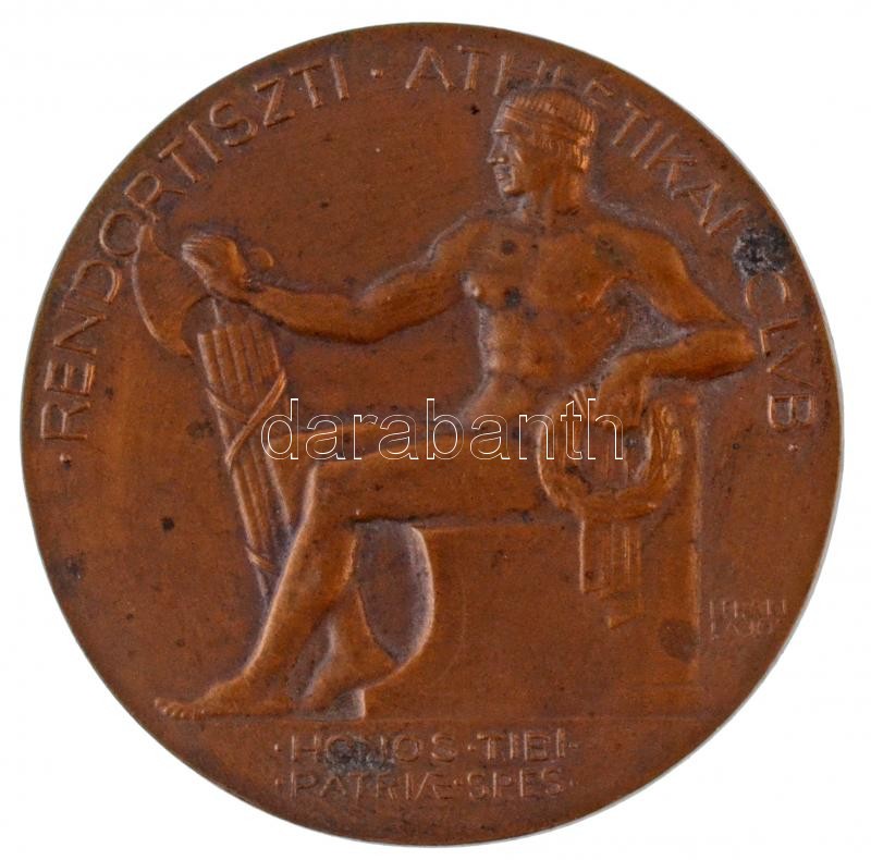 Berán Lajos (1882-1943) 1934. "Rendőrtiszti Athlétikai Club - Honos Tibi Patriae Spes / XIV. O. Ten. V. Egyes III." Br díjérem "Berán N BPest" gyártói jelzéssel (51mm) T:2