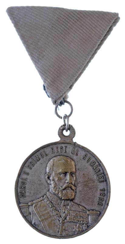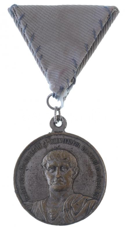 Románia 1906. "Románia 1800 éves fennállásának emlékére 106-1906, Traianus és I. Károly" ezüstözött Br emlékérem mellszalagon T:2-