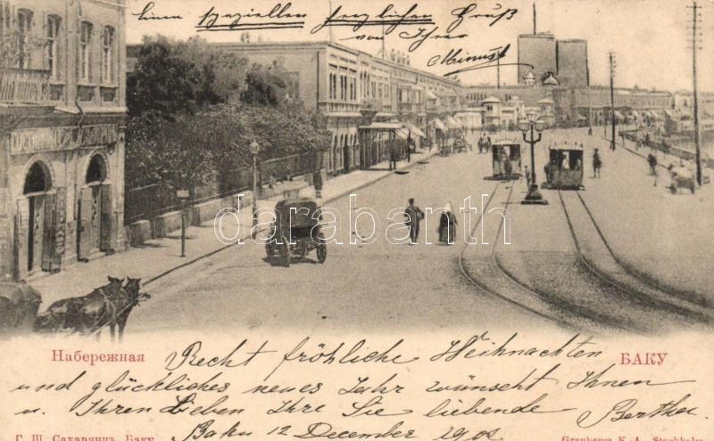 Baku, quay with trams (Rb) https://www.darabanth.com/de/38-Gross-Auktion/38.1/Ansichtskarten/Aserbaidschan~15660/Baku-quay-with-trams-Rb~II1777000
