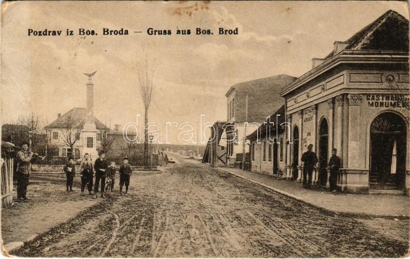 Brod, Bosanski Brod; Gasthaus zur Monument / otel and restaurant, stat... https://www.darabanth.com/de/38-Gross-Auktion/38.1/Ansichtskarten/Bosnien-und-Herzegowina~15663/Brod-Bosanski-Brod-Gasthaus-zur-Monument-otel-and-restaurant-statue-street-Rb~II2588732
