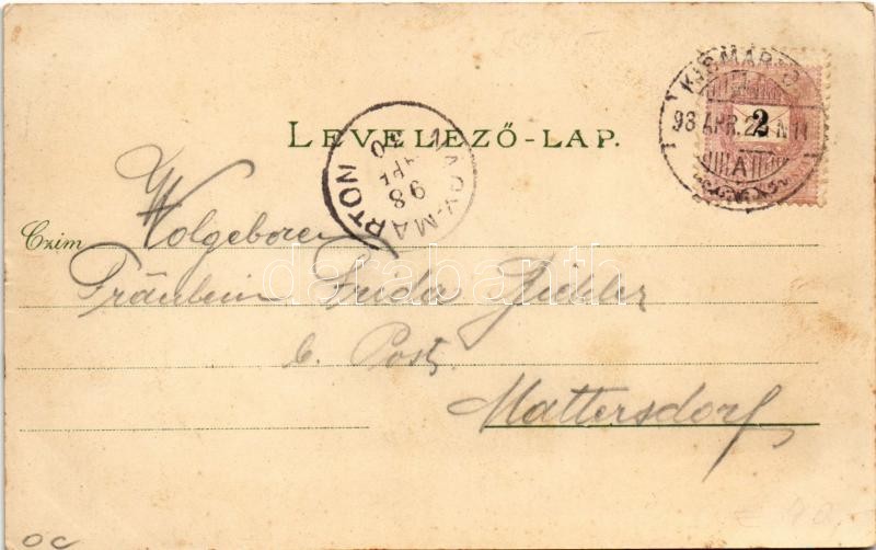 1898 (Vorläufer) Kismarton, Eisenstadt; Katonai alreáliskola, Eszterházy Herceg várkastély, Mária templom, Kálváriatemplom Felsőkismartonhegyen. Anton Pinter kiadása / military school, castle, churches. Art Nouveau, floral, litho