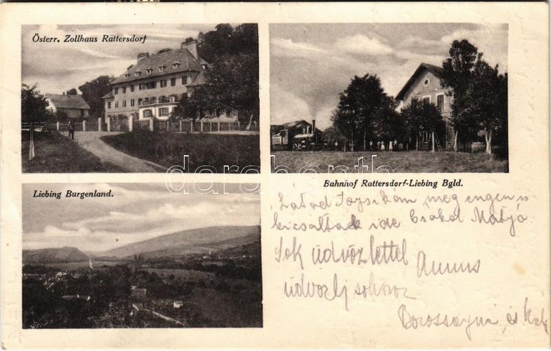 Rőtfalva-Rendek, Rattersdorf-Liebing; Bahnhof, Österr. Zollhaus / vasú... https://www.darabanth.com/de/38-Gross-Auktion/38.1/Ansichtskarten/Burgenland~15653/Rotfalva-Rendek-Rattersdorf-Liebing-Bahnhof-Osterr-Zollhaus-vasutallomas-Osztrak-vamhC3~II2610270