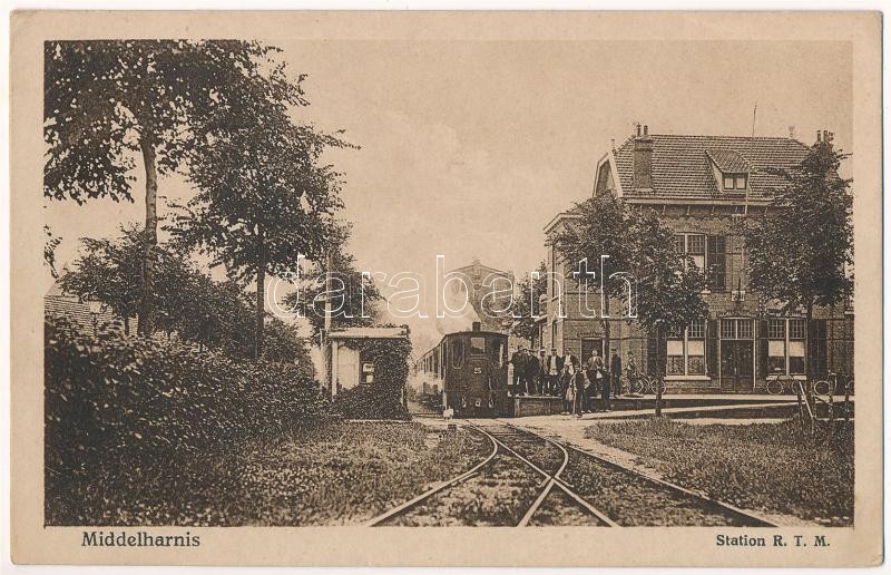1922 Middelharnis, Railway Station RTM, train (EK) https://www.darabanth.com/de/38-Gross-Auktion/38.1/Ansichtskarten/Die-Niederlanden~15675/1922-Middelharnis-Railway-Station-RTM-train-EK~II2613746