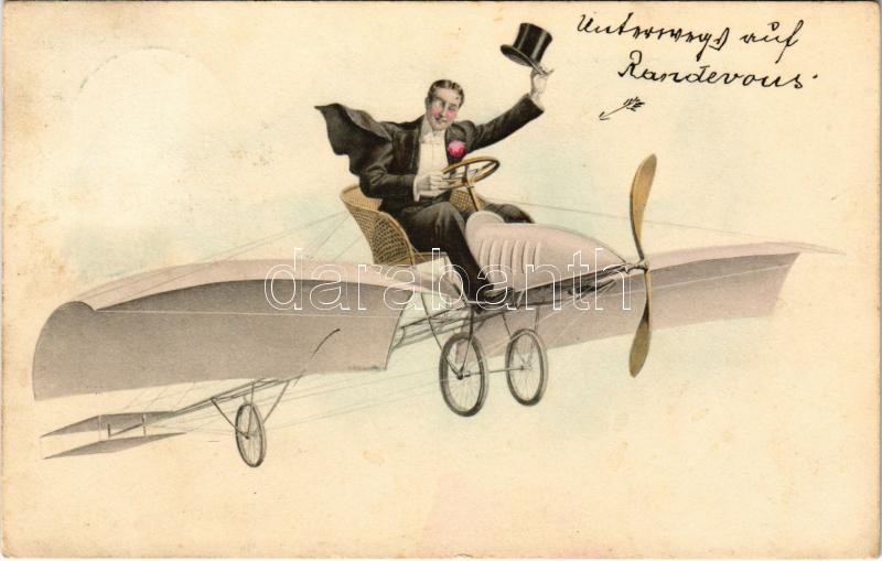 Úriember repülőgépen / Gentleman in aircraft. M. Munk Vienne Nr. 585. https://www.darabanth.com/de/38-Gross-Auktion/38.1/Ansichtskarten/Flugzeug~15736/Uriember-repulogepen-Gentleman-in-aircraft-M-Munk-Vienne-Nr-585~II2589401