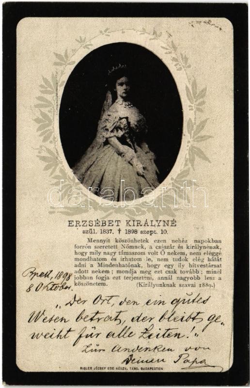 1898 (Vorläufer) Erzsébet királynő (Sissi) gyászlapja. Rigler József Ede részv. társ. Art Nouveau / Obituary postcard of Empress Elisabeth of Austria (Sisi) (fa)