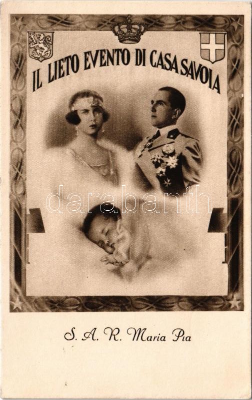 1934 S.A.R. Maria Pia - Il lieto evento di Casa Savoia / Umberto II of Italy, Marie-José of Belgium and their daughter Princess Maria Pia of Bourbon-Parma
