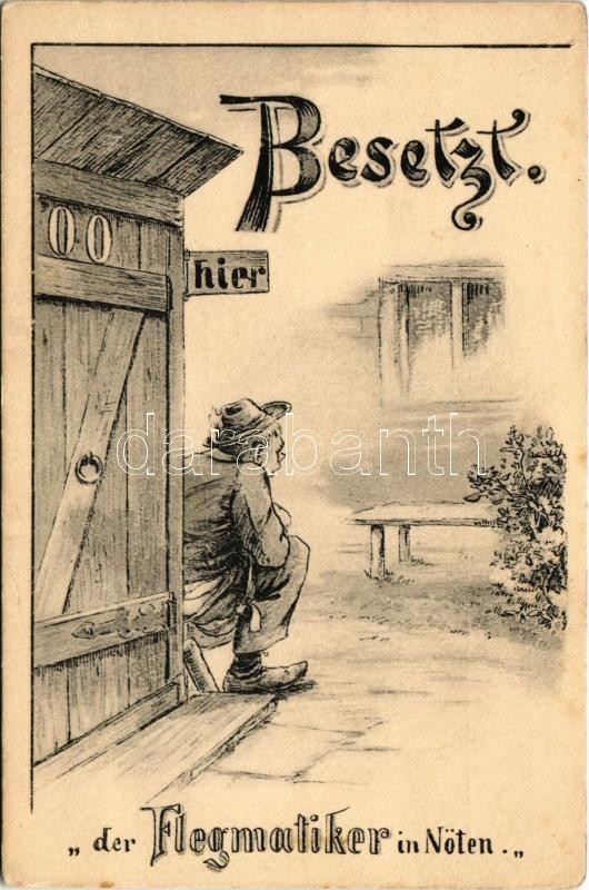 Besetzt. Der Flegmatiker in Nöten / Foglalt pottyantós, humor / Occupi... https://www.darabanth.com/de/38-Gross-Auktion/38.1/Ansichtskarten/Humor~15707/Besetzt-Der-Flegmatiker-in-Noten-Foglalt-pottyantos-humor-Occupied-toilet-humour~II2615856