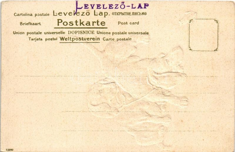 Tacskók. Dombornyomott litho / Dachshund dogs. Embossed litho https://www.darabanth.com/de/38-Gross-Auktion/38.1/Ansichtskarten/Hunde~15722/Tacskok-Dombornyomott-litho-Dachshund-dogs-Embossed-litho~II2615513