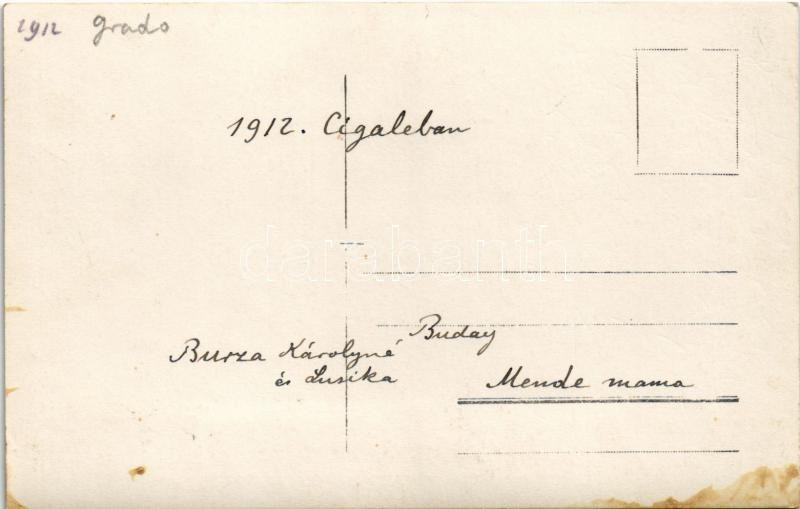 1912 Grado, Cigale, családi nyaralás a strandon / family holiday on th... https://www.darabanth.com/de/38-Gross-Auktion/38.1/Ansichtskarten/Italien~15710/1912-Grado-Cigale-csaladi-nyaralas-a-strandon-family-holiday-on-the-beach-photo~II2591846