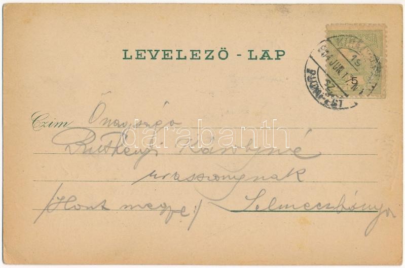 1904 Kőrösmező, Körösmező, Jaszinya, Jasina, Yasinia (Máramaros); Trufaneczi vízesés, Apsineczi gát, vasútállomás gőzmozdonnyal, A. Schwidernoch 4268. / waterfall, dam, railway station, locomotive. Art Nouveau, floral, litho (EK)