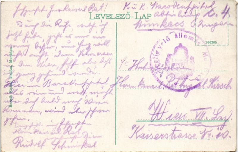 Beschreibung: Beregvár, Karpaty, Karpati (Szentmiklós, Beregszentmiklós, Cinadievo, Chynadiyovo); Schönborn kastély. Bertsik Emilné kiadása / castle + "Megfigyelő Állomás Munkács"