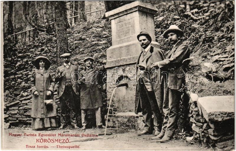 Kőrösmező, Körösmező, Jaszinya, Jasina, Yasinia (Máramaros); Magyar Turista Egyesület Máramarosi Osztálya a Tisza forrásnál. Benkő Miklós kiadása / Theissquelle / Maramures Department of the Hungarian Tourist Association at the Tisa river source