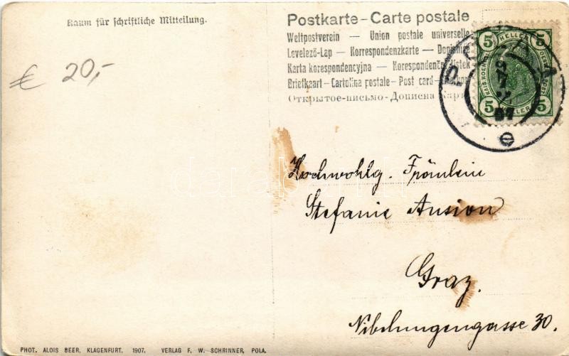 Beschreibung: 1907 SMS Babenberg az Osztrák-Magyar Haditengerészet Habsburg-osztályú pre-dreadnought csatahajója / K.u.K. Kriegsmarine Linienschiff / Austro-Hungarian Navy SMS Babenberg pre-dreadnought battleship. Phot. Alois Beer, F.W. Schrinner (EK)