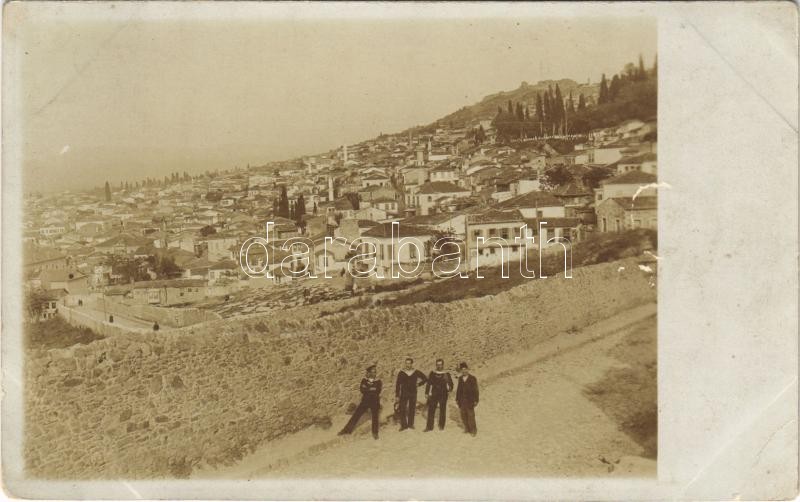 Beschreibung: 1914 Antalya, Adalia; SMS Zrínyi az Osztrák-Magyar Haditengerészet Radetzky-osztályú pre-dreadnought csatahajó matrózai a kisázsiai török városban / K.u.K. Kriegsmarine Matrosen / Austro-Hungarian Navy, mariners of SMS Zrínyi on mainland. photo (EK)