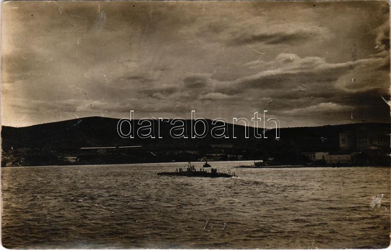 "Curie" francia tengeralattjáró az osztrák-magyar haditengerészet kötelékében U14 néven / K.u.K. Kriegsmarine Unterseeboot 14 / French "Curie" submarine under Austro-Hungarian Navy. photo (fl)