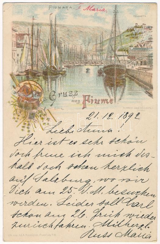 1892 (Vorläufer) Fiume, Rijeka; Fiumara, Tersatto / Trsat. A. Rosenbla... https://www.darabanth.com/de/38-Gross-Auktion/38.1/Ansichtskarten/Kroatien~15651/1892-Vorlaufer-Fiume-Rijeka-Fiumara-Tersatto-Trsat-A-Rosenblatt-Art-Nouveau-floral-litho~II2600086