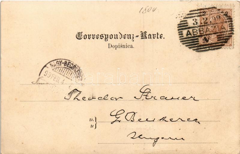 Beschreibung: 1899 (Vorläufer) Abbazia, Opatija; Angiolina Bad / fürdő / beach (EK)