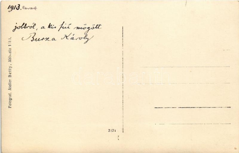 1913 Abbazia, Opatija; Füred-Fiume hajókirándulás, hölgy kerékpárral, ... https://www.darabanth.com/de/38-Gross-Auktion/38.1/Ansichtskarten/Kroatien~15651/1913-Abbazia-Opatija-Fured-Fiume-hajokirandulas-holgy-kerekparral-Burza-Karoly-Fotogr-~II2591741