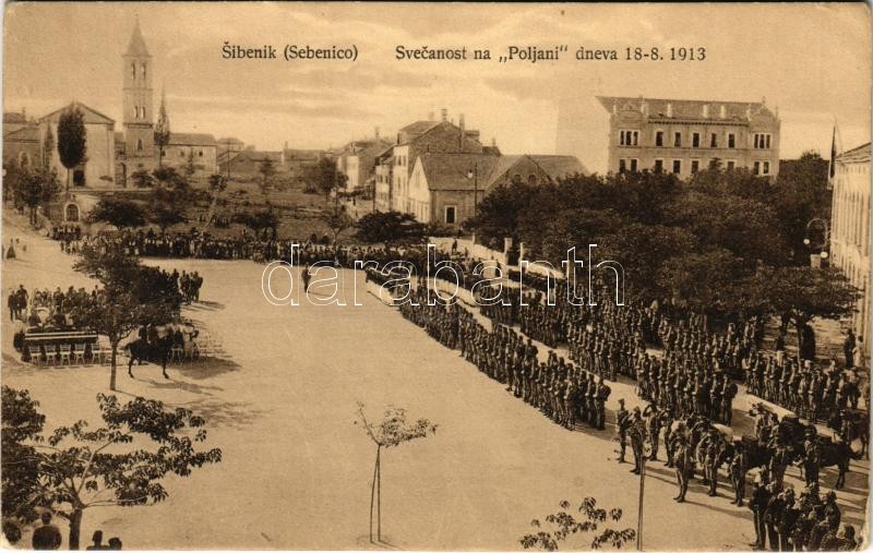Sibenik, Sebenico; Svecanost na Poljani dneva 18-8. 1913 / Katonai par... https://www.darabanth.com/de/38-Gross-Auktion/38.1/Ansichtskarten/Kroatien~15651/Sibenik-Sebenico-Svecanost-na-Poljani-dneva-18-8-1913-Katonai-parade-military-parade-EK~II2609983