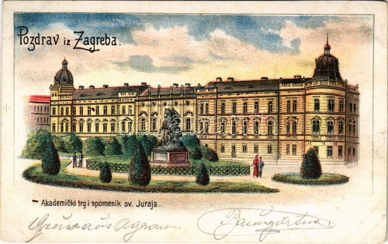 Zagreb, Zágráb; Akademicki trg i spomenik sv. Juraja. academy and stat... https://www.darabanth.com/de/38-Gross-Auktion/38.1/Ansichtskarten/Kroatien~15651/Zagreb-Zagrab-Akademicki-trg-i-spomenik-sv-Juraja-academy-and-statue-litho~II2600283