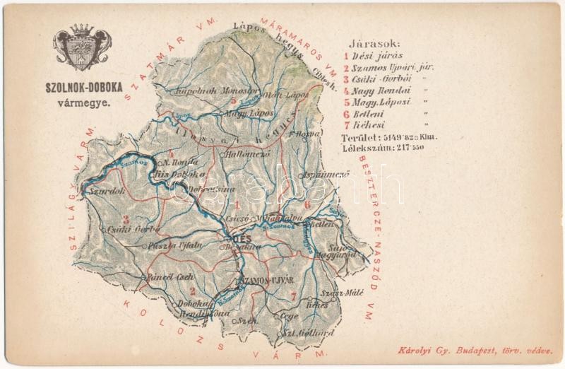 Szolnok-Doboka vármegye térképe. Kiadja Károlyi Gy. / Map of Comitatul... https://www.darabanth.com/de/38-Gross-Auktion/38.1/Ansichtskarten/Landkarte~15740/Szolnok-Doboka-varmegye-terkepe-Kiadja-Karolyi-Gy-Map-of-Comitatul-Solnoc-Dabaca-county~II2614822