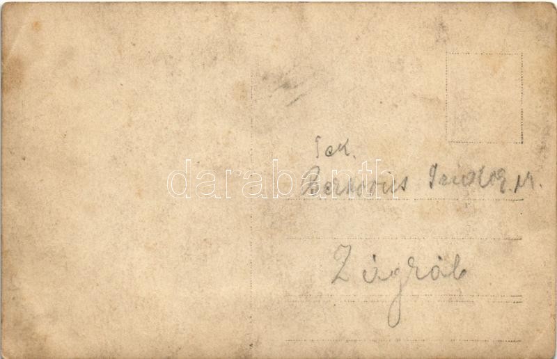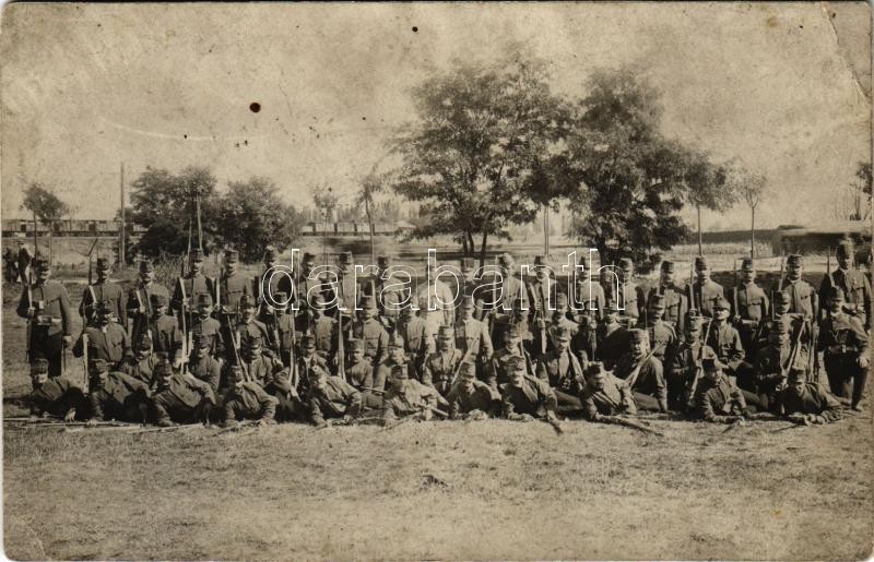 Beschreibung: Osztrák-magyar katonai alakulat Zágrábnál, tehervonat a háttérben / K.u.k. military unit near Zagreb, cargo train in the background. photo (EK)