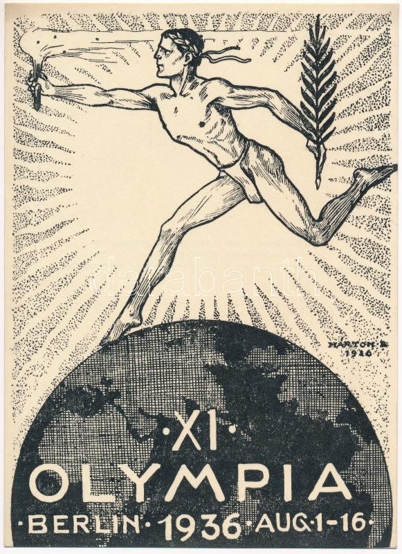 1936 Berlin, XI. Olympia. Dr. Illyés László kiadása, megemlékezése az olimpia megnyitójáról. Alkalmi Grafika 3. sz. / Summer Olympics in Berlin s: Márton Lajos