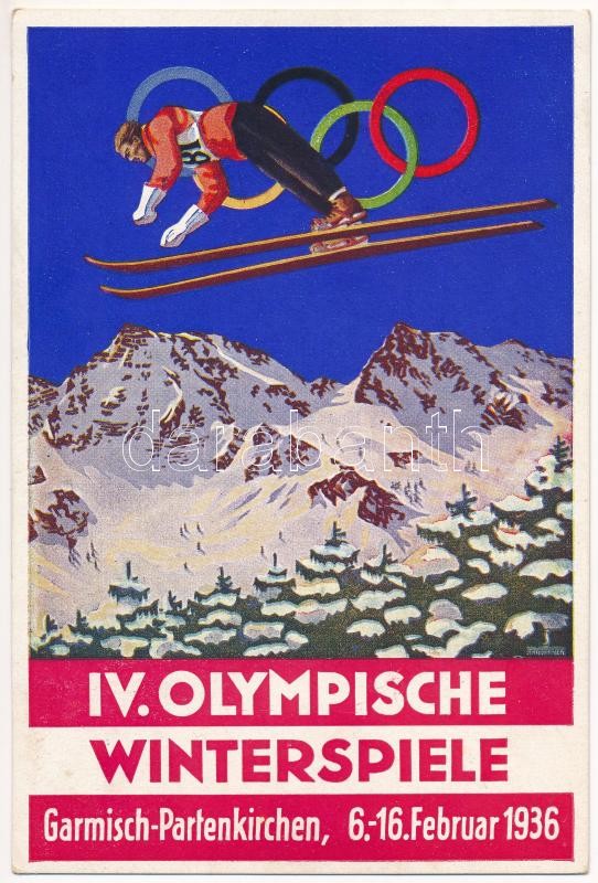 1936 Garmisch-Partenkirchen IV. Olympische Winterspiele / 1936. évi téli olimpiai játékok / Winter Olympics in Garmisch-Partenkirchen advertisement card, winter sport, ski jump. So. Stpl s: Schroffner (fl)