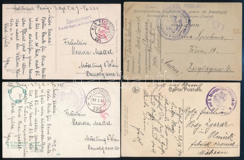 18 db I. világháborús tábori posta képeslap + 7 hadifogolylap + 5 cenzúrás képeslap / The Great War 18 Field postcards + 7 POW cards + 5 censored postcards