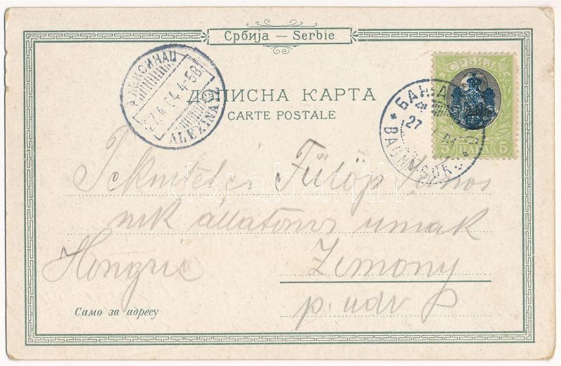 Beschreibung: 1904 Sokobanja, Soko Banja; spa, new and old schools, church, summer villa of Stojan Zivadinovic. Art Nouveau, floral, litho (EK)