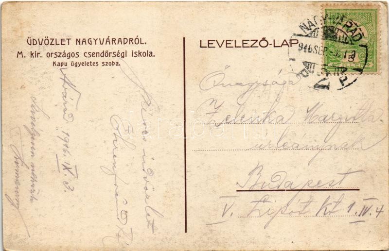 1916 Nagyvárad, Oradea; M. kir. országos csendőrségi iskola, kapu ügye... https://www.darabanth.com/de/38-Gross-Auktion/38.1/Ansichtskarten/Siebenburgen~15646/1916-Nagyvarad-Oradea-M-kir-orszagos-csendorsegi-iskola-kapu-ugyeletes-szoba-gendarmerie~II2600263