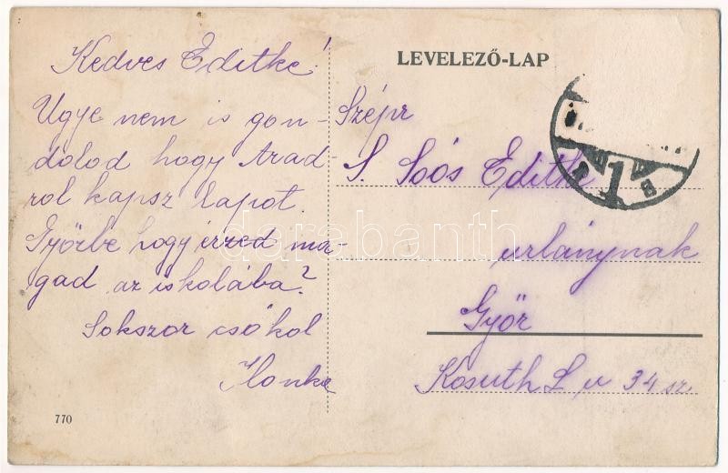 Arad, Motoros vasútállomás az Arad-Radnai úton, kisvasút, városi vasút, vonat, Flesch András kioszkja / urban railway station with train, kiosk shop (Rb)