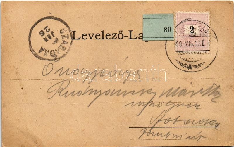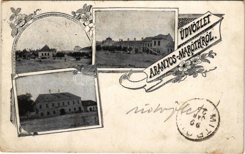1899 (Vorläufer) Aranyosmarót, Zlaté Moravce; Nagy szálloda, megyeház, törvényszéki palota, építkezés, Fő tér / hotel, county hall, court palace, construction, main square. Art Nouveau, floral (r)